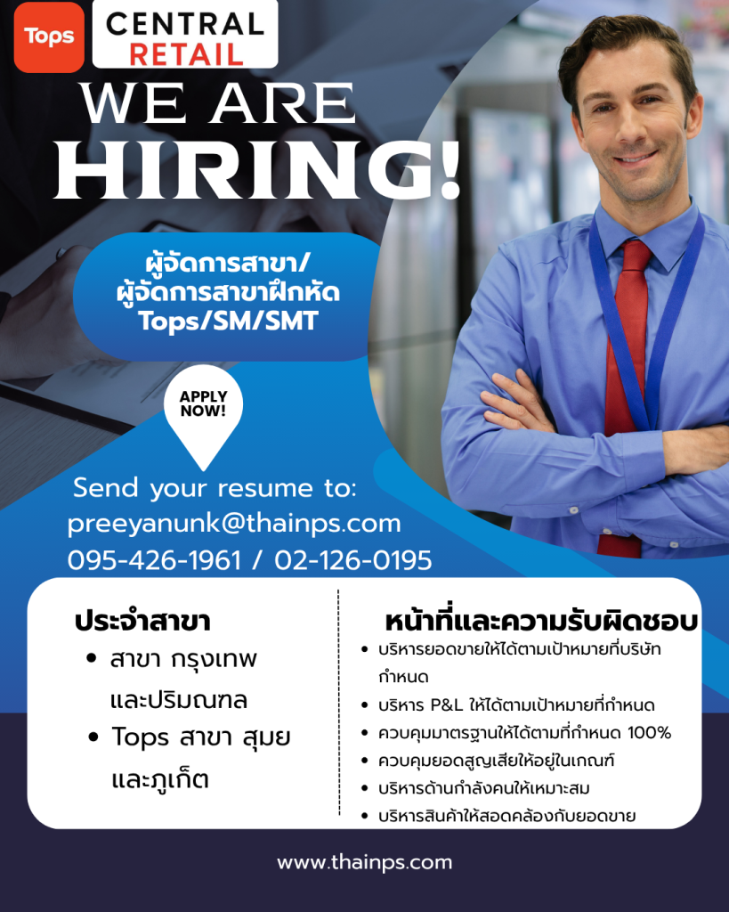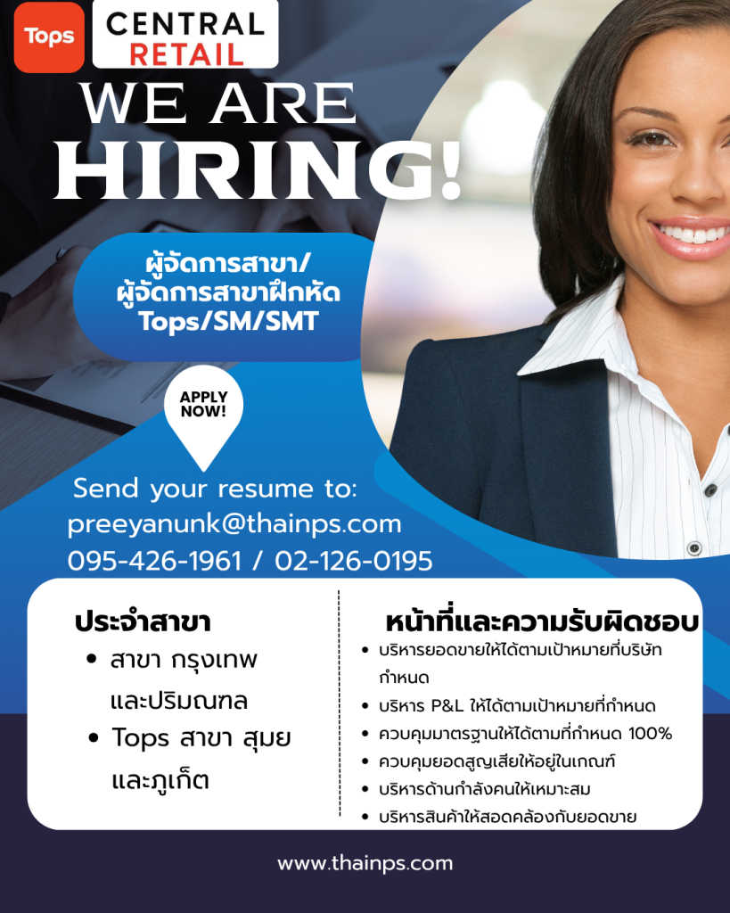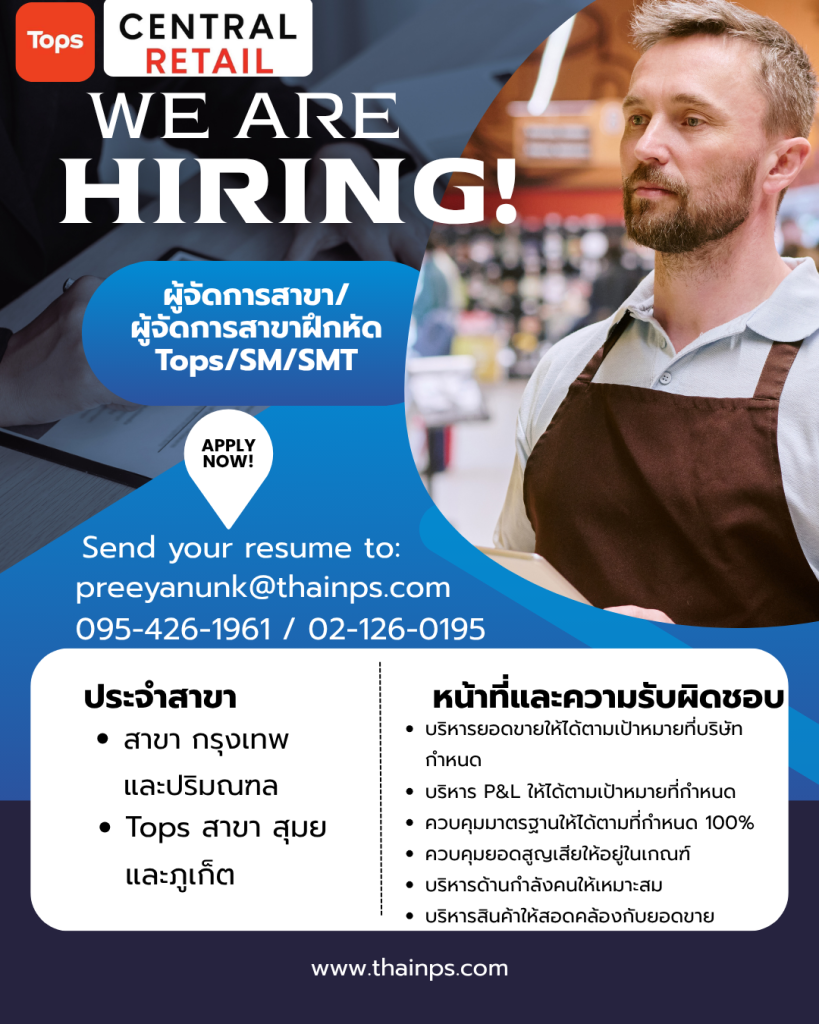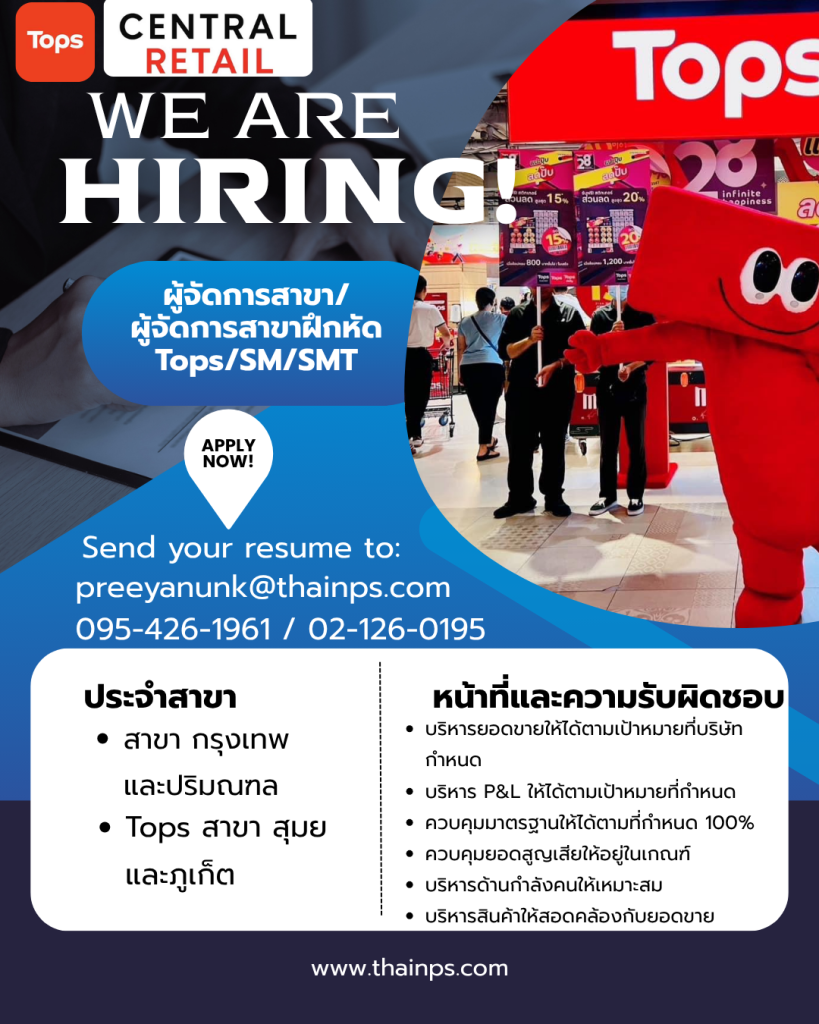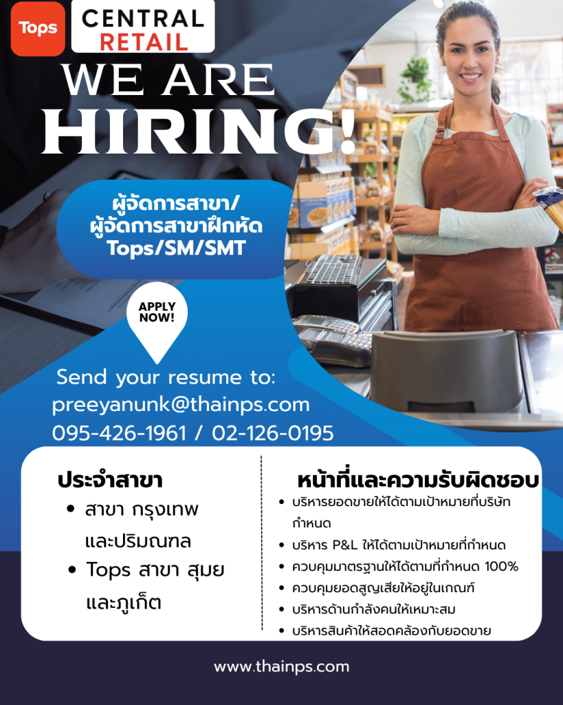 - ร้านค้าชั้นนำ เปิดรับหลายตำแหน่ง