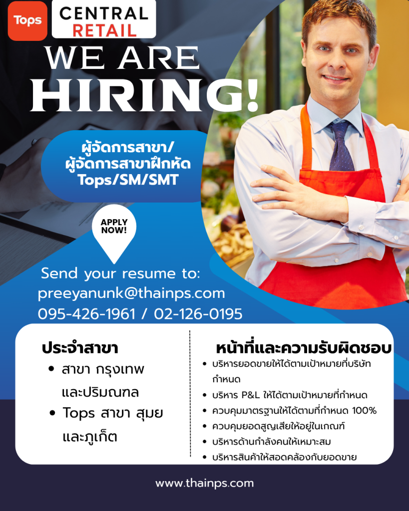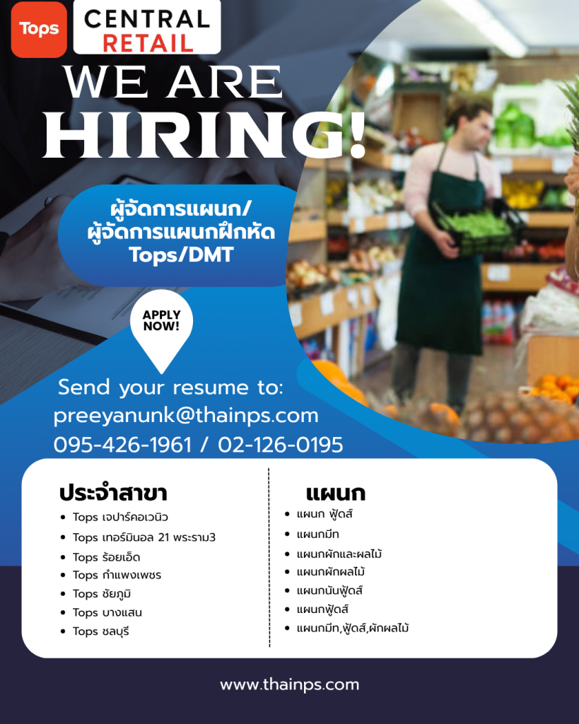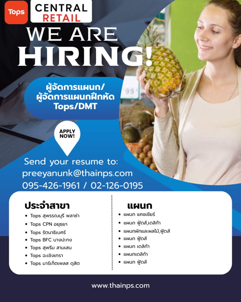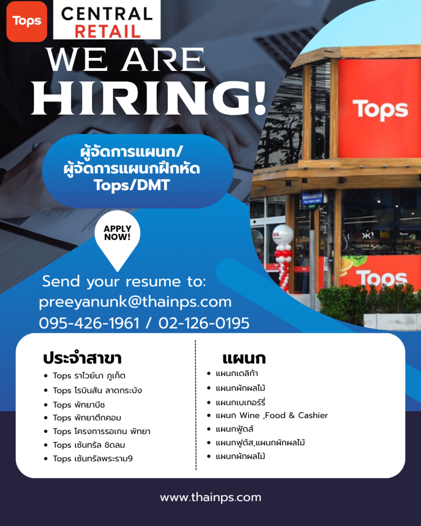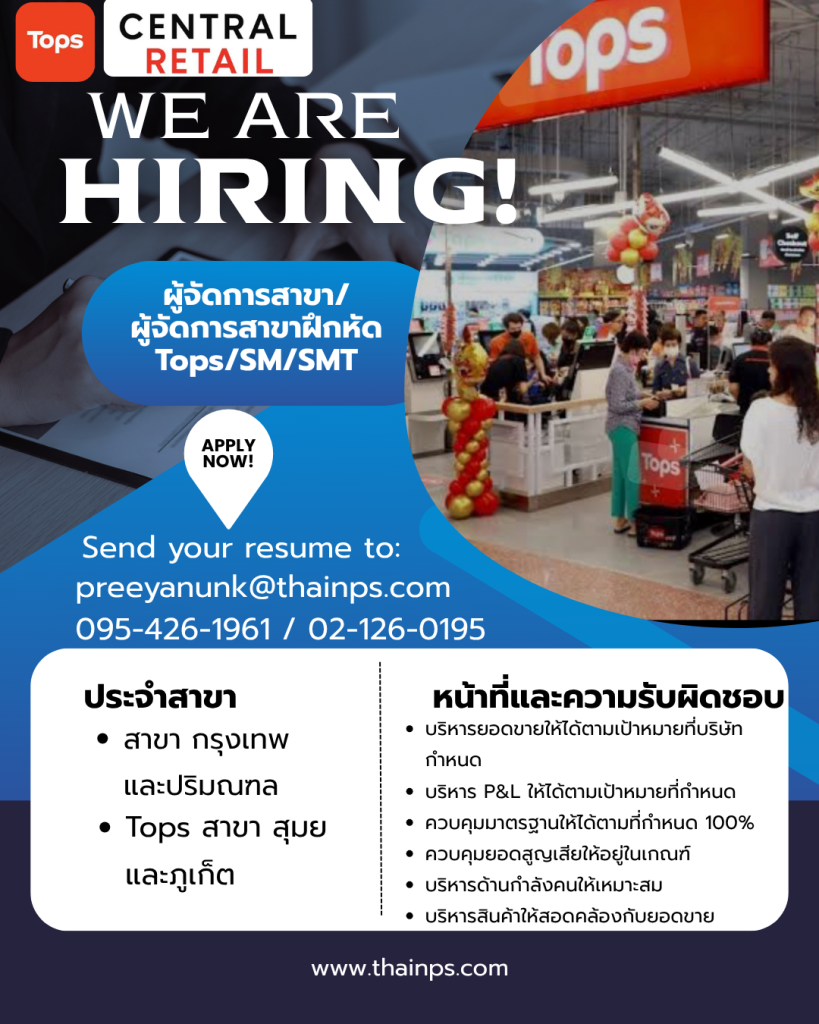 - ร้านค้าชั้นนำ เปิดรับหลายตำแหน่ง