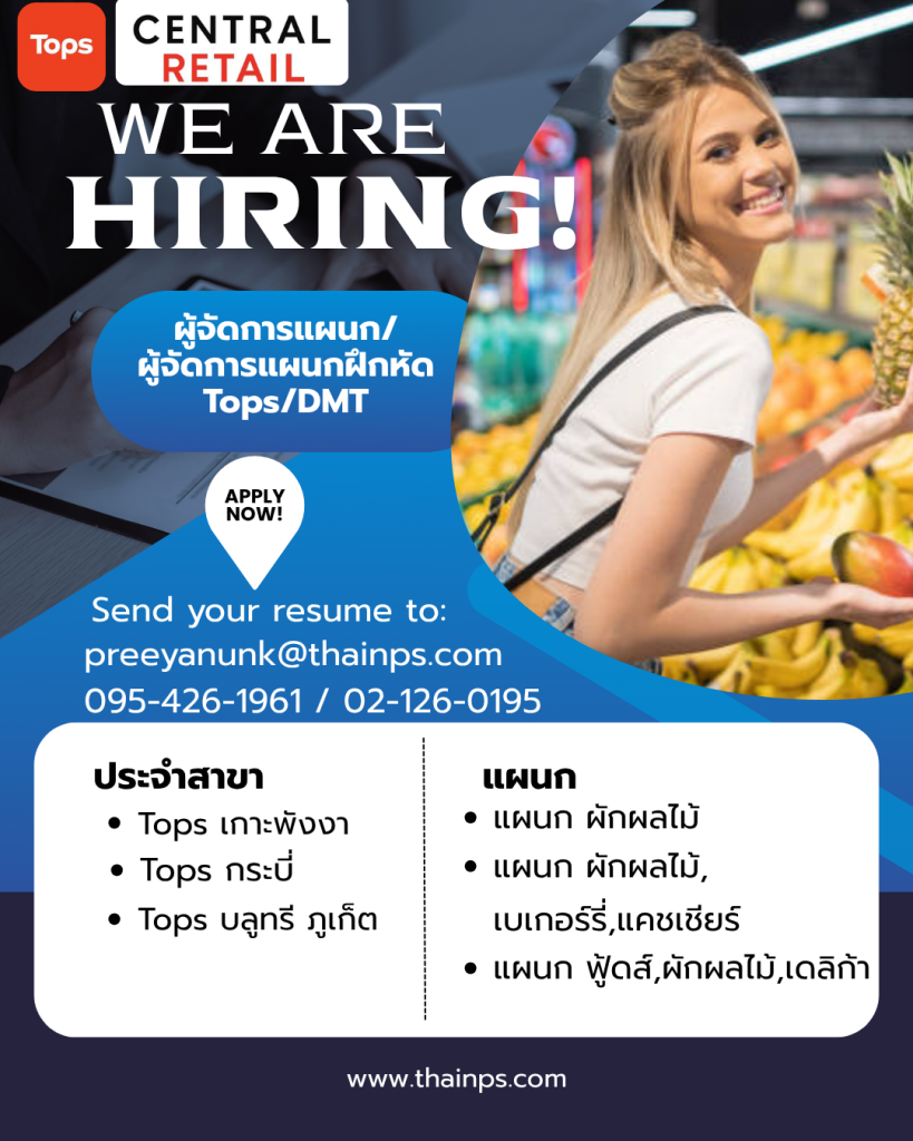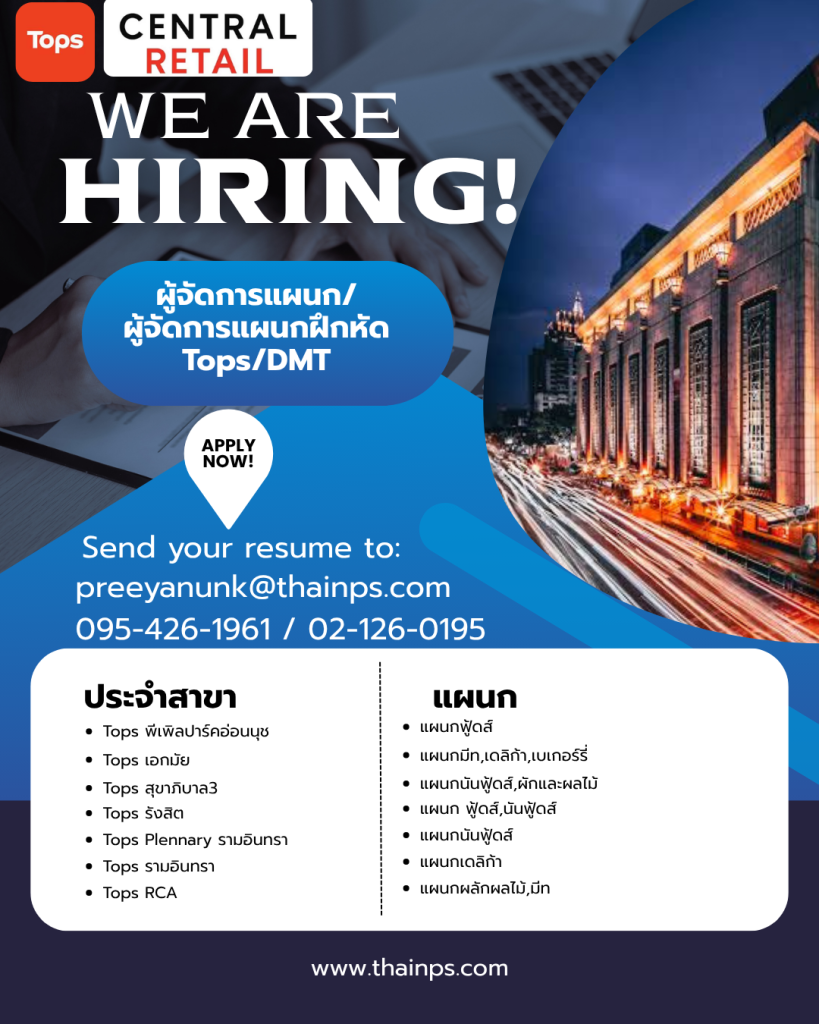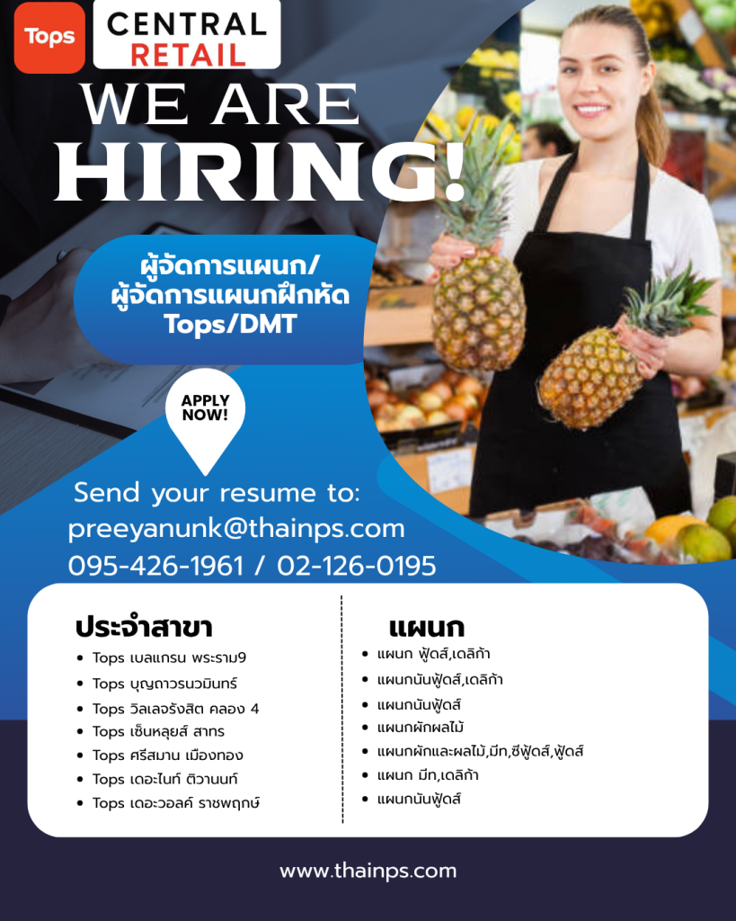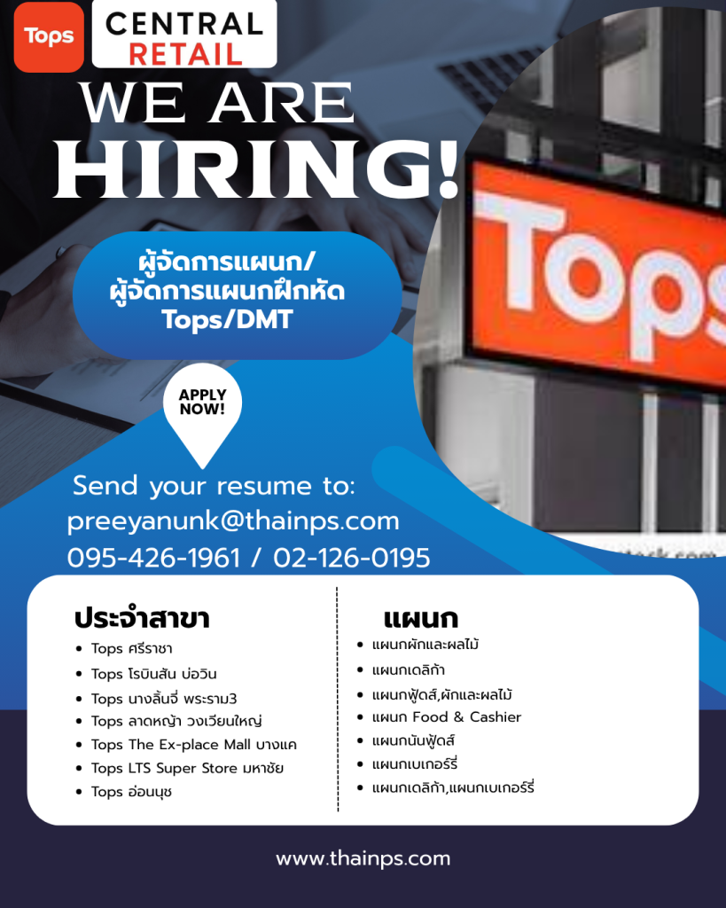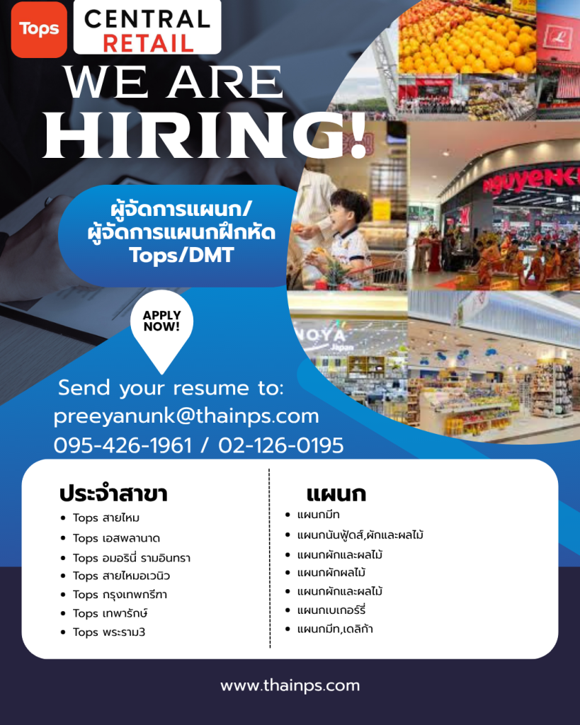- ร้านค้าชั้นนำ เปิดรับหลายตำแหน่ง