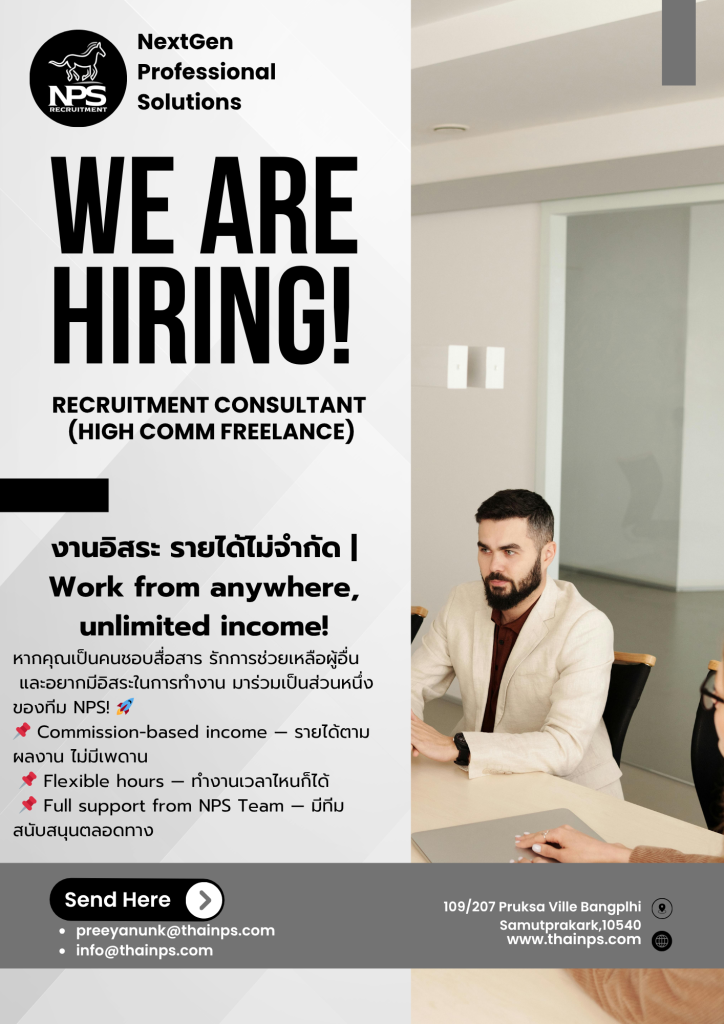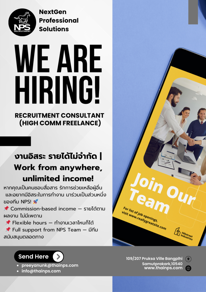 We are hiring! ค้นหางานในฝันใกล้บ้านคุณ รวมตำแหน่งงานจากทั่วประเทศ มากกว่า 180 ตำแหน่ง กว่า 1,000 อัตรา “หาคน คนหางาน หาคนตรงงาน หางานตรงใจ” NPS JOBS