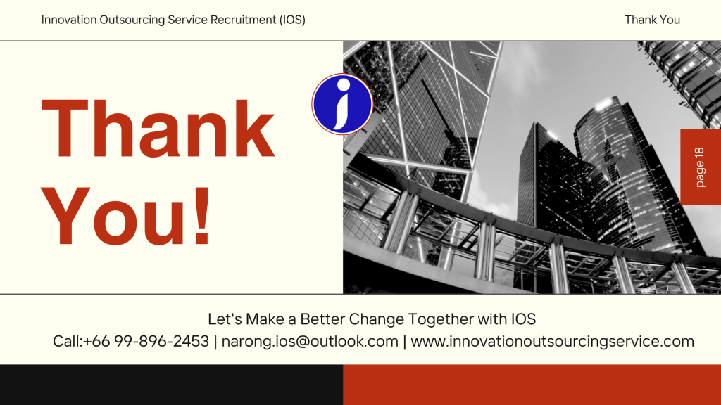 CONTACT US: 📍 Innovation Outsourcing Service Recruitment Co., Ltd. 📞 โทร: 099-896-2453 📧 อีเมล: narong.ios@outlook.com 🌐 เว็บไซต์: www.innovationoutsourcingservice.com “Innovation in People, Excellence in Service”