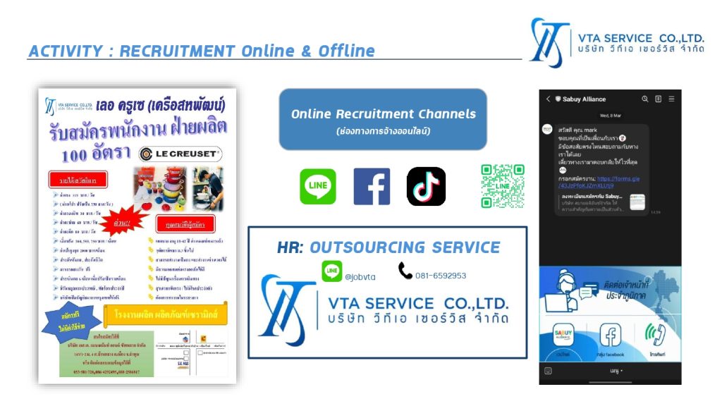 - Temporary & Contract Staffing: บริการจัดหาพนักงานชั่วคราวและพนักงานสัญญาจ้าง เพื่อรองรับช่วง Peak Season หรือโปรเจกต์เฉพาะกิจ