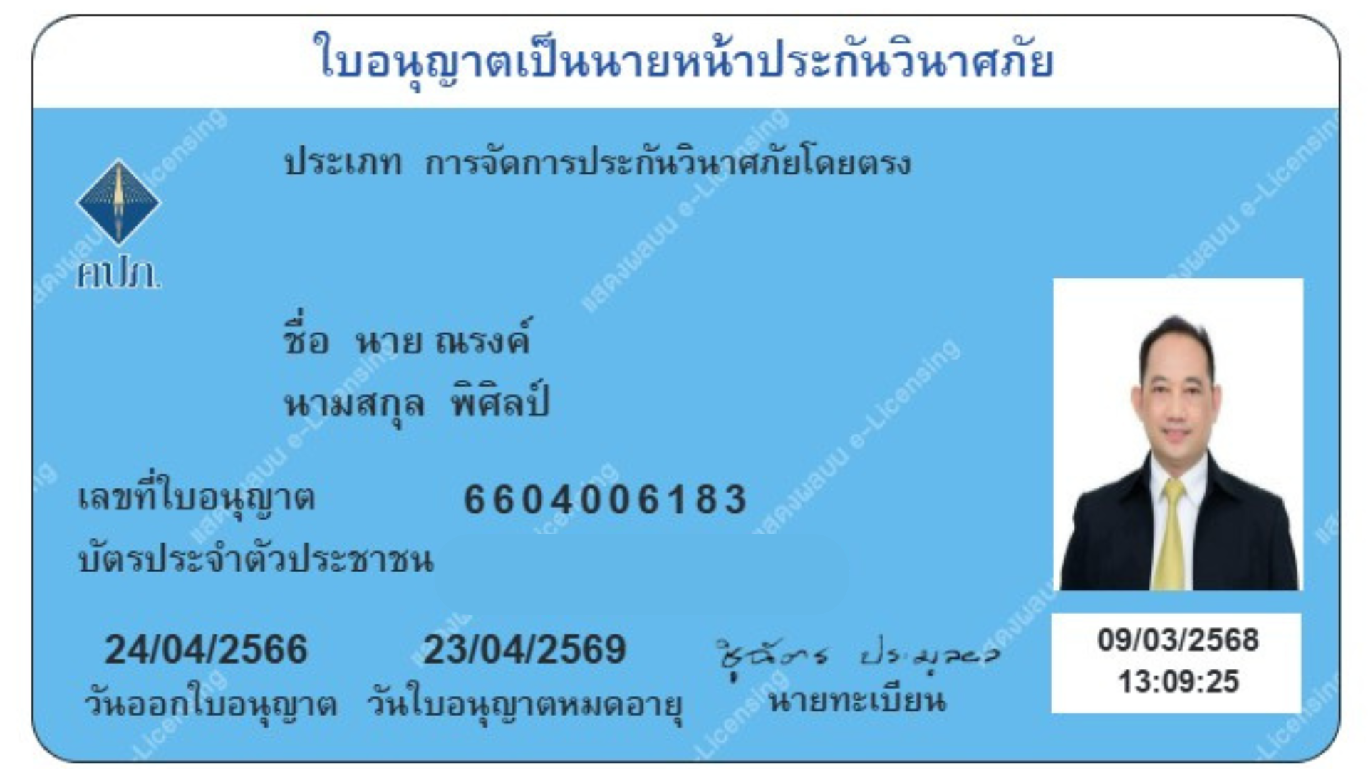 นายหน้าประกันวินาศภัย ใบอนุญาต เลขที่:6604006183