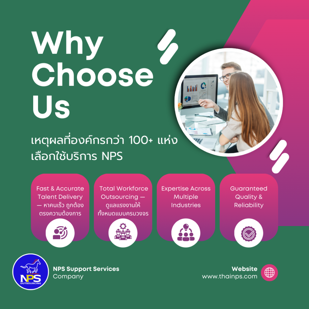 - ดูแลแรงงาน Outsourcing 200–500+ คนรายเดือน